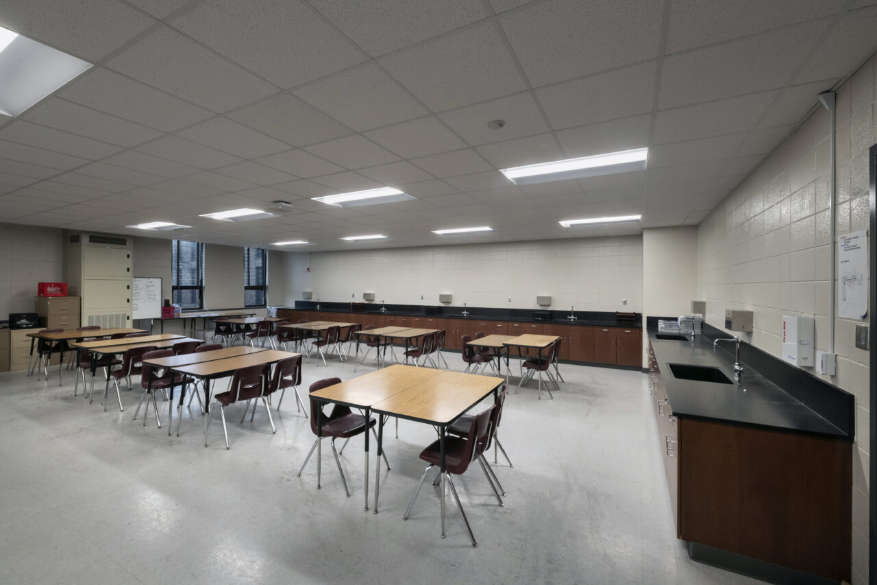 A comprehensive school renovation was carried out in phases, encompassing the kitchen, cafeteria, classrooms, front vestibules and offices, gymnasium, library, and corridors. Each phase was completed on schedule, even during a subcontractor's union strike. The project demanded regular, overtime, and off-shift work schedules, and work was conducted year-round in areas adjacent to students and staff to meet project requirements. This achievement was made possible through detailed planning, effective communication, and strong teamwork with the owner and contractors.